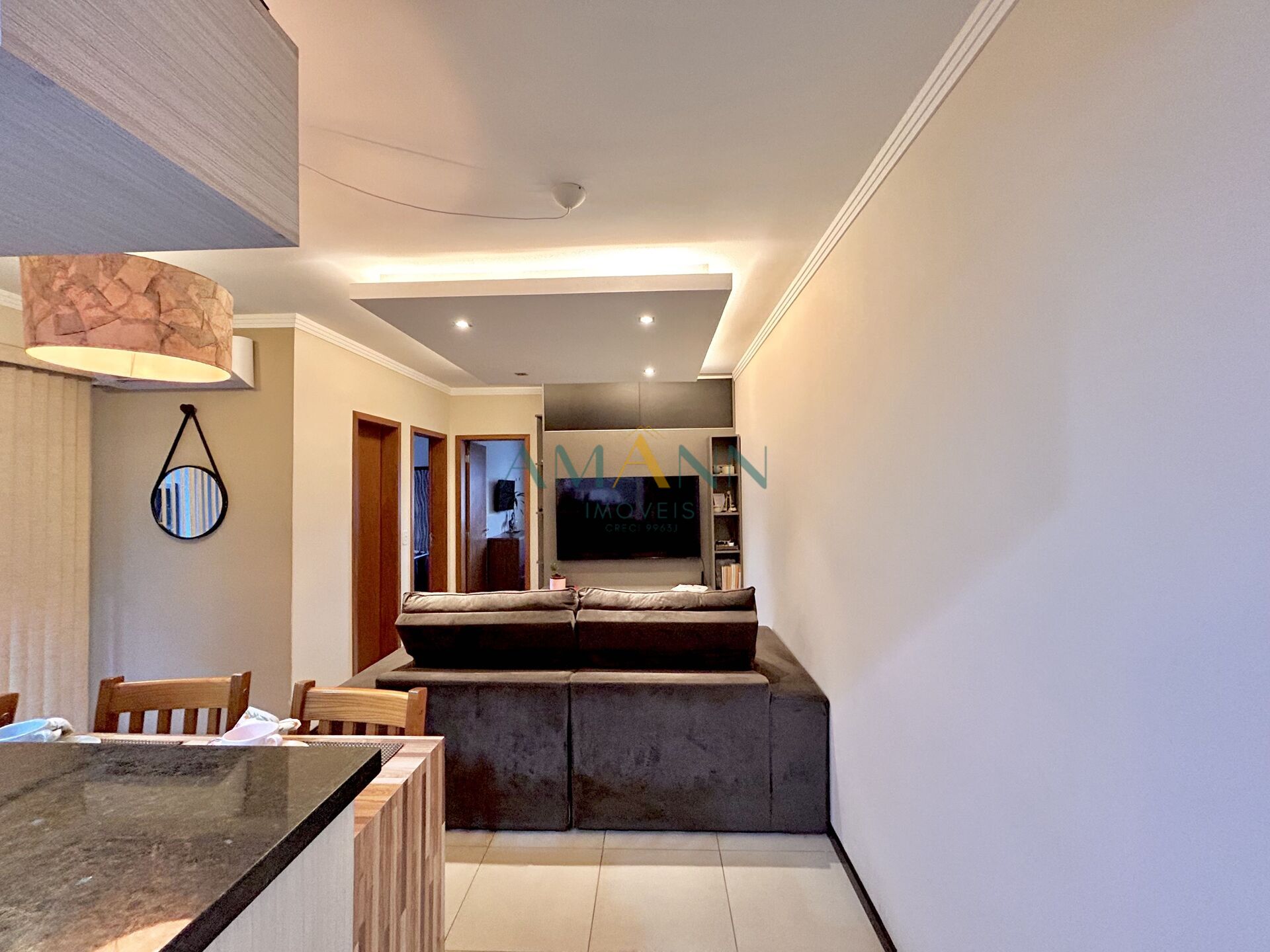 O imóvel conta com 2 dormitórios, ambientes bem distribuídos e uma sala em conceito aberto, proporcionando maior integração e sensação de amplitude. A cozinha planejada oferece praticidade no dia a dia, enquanto o rebaixo em gesso agrega um toque moderno ao acabamento.
